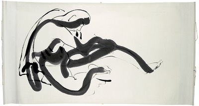野口勇(Isamu Noguchi,1904﹣1988)是上世纪极负盛名的美日裔混血艺术家。他所创作的禅意十足的雕塑,在北美许多大城市街头或美术馆中都能看到。1930年野口在巴黎从布朗库西学习后,由于在日本的父亲拒绝见他,就来到北京住了半年。他在胡同里租下房子,雇了车伕家佣,俨然一位京派阔少的架子。野口不仅对东方古都的文化和生活方式产生极大兴趣,而且专门下功夫学习汉语和水墨画。齐白石就是他的笔墨启蒙老师。野口在老师指导下画了不少水墨画,他尤其喜欢画人物,甚至用毛笔画丈二匹的裸体人像。不知他的出格行为是否曾惹得老先生发火。